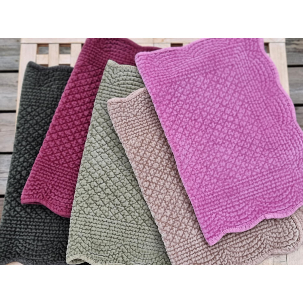 Anouska Avlang spisebrikke med quiltet mønster, fra Anouska - som kler et hvert bord! Størrelse: 35 x 50 cmMateriale: forside i 100% bomullsvelur og bakside i 100% bomull. Vaskes i maskin på 30 grader. Bør henges...