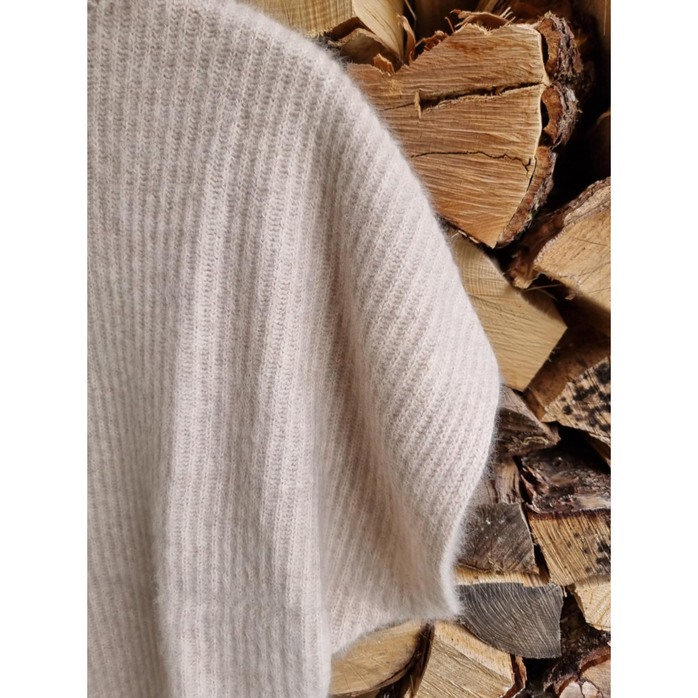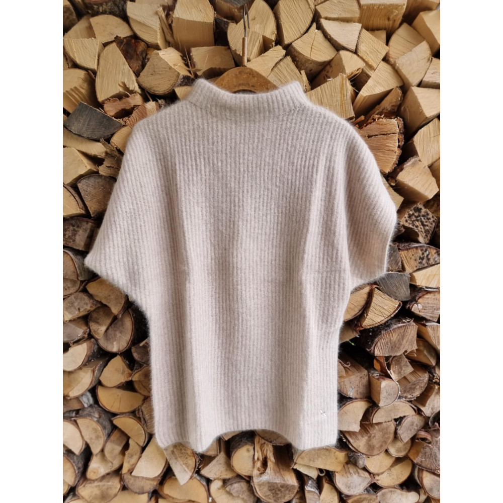 Opplev den mykeste strikken, laget i en eksklusiv blanding av cashmere og vaskebjørn-garn. Pulloveren har en elegant, høy hals og korte ermer.