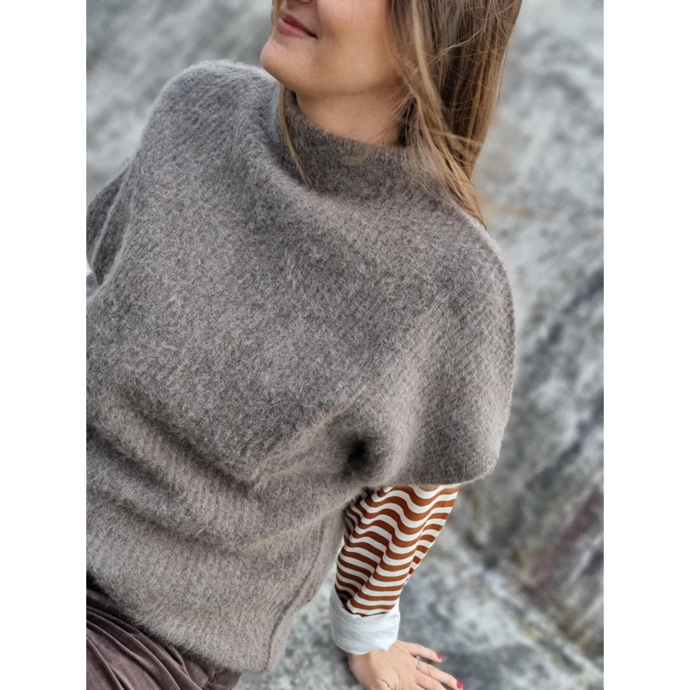 Opplev den mykeste strikken, laget i en eksklusiv blanding av cashmere og vaskebjørn-garn. Pulloveren har en elegant, høy hals og korte ermer.
