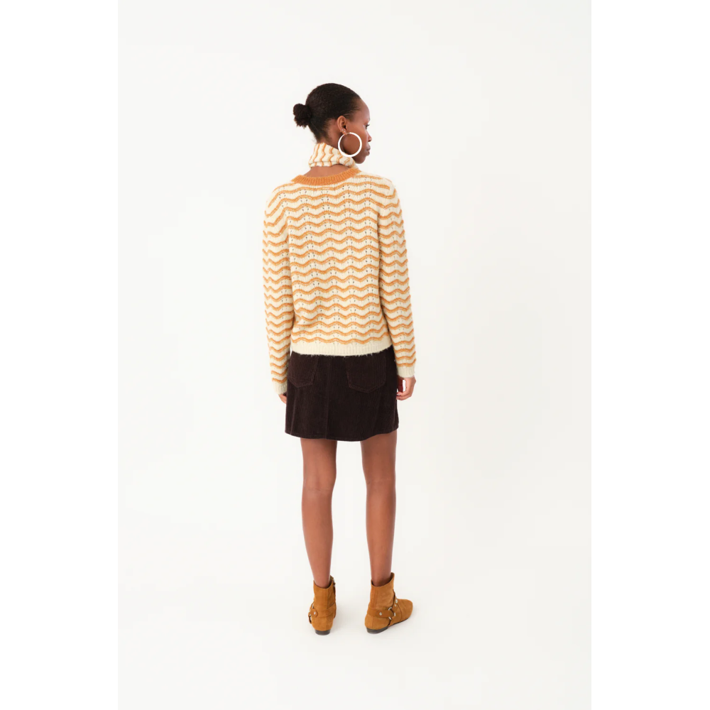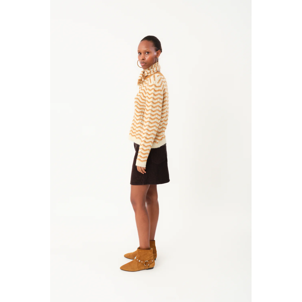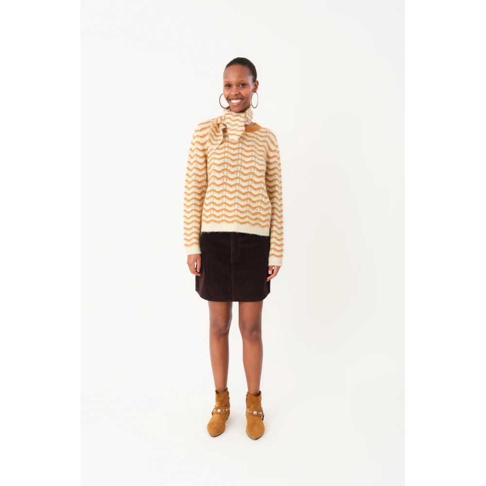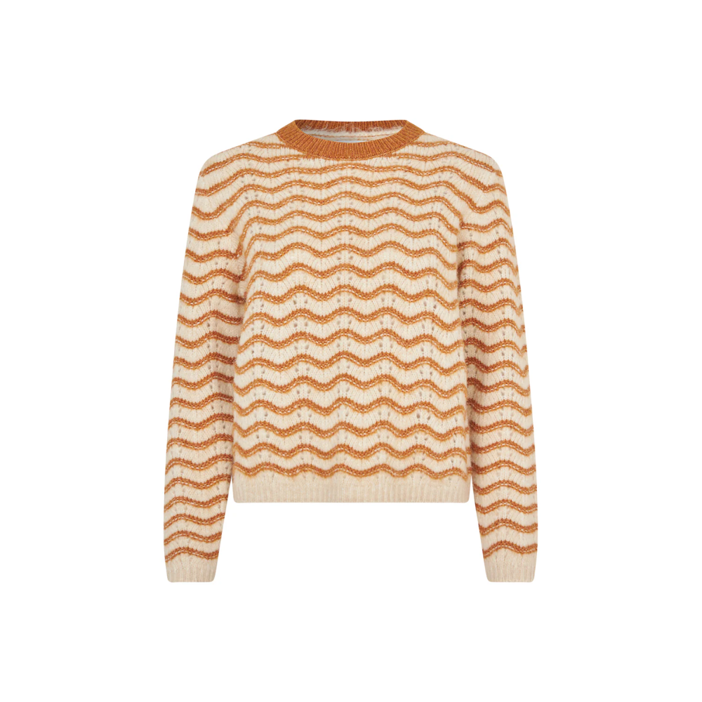 Lano genser fra lollys er en feminin lekker genser med bølgemønster i camel farge. Superfin til både bukser og skjørt. Komfortabel kvalitet, myk og lett. Perfekt...