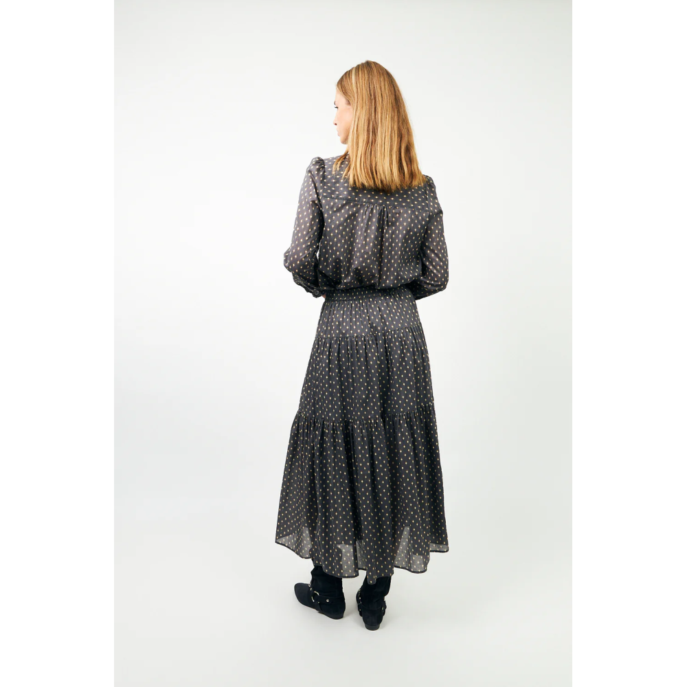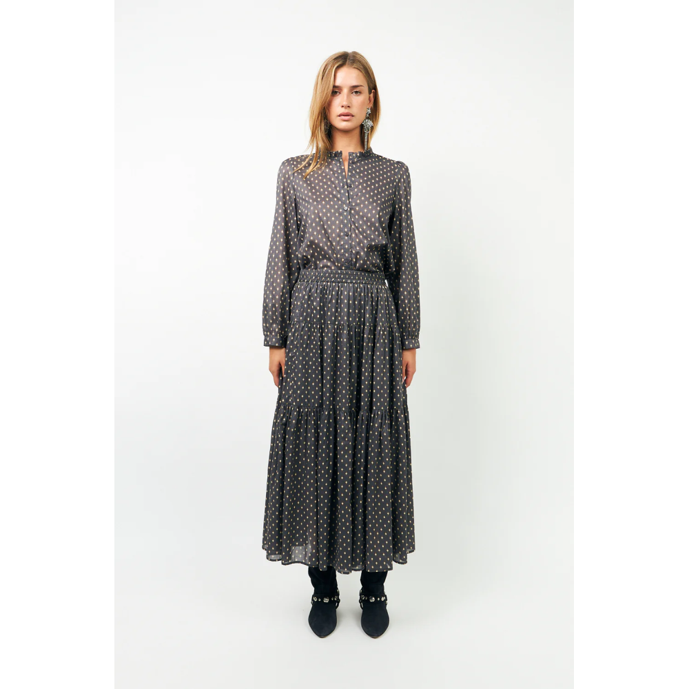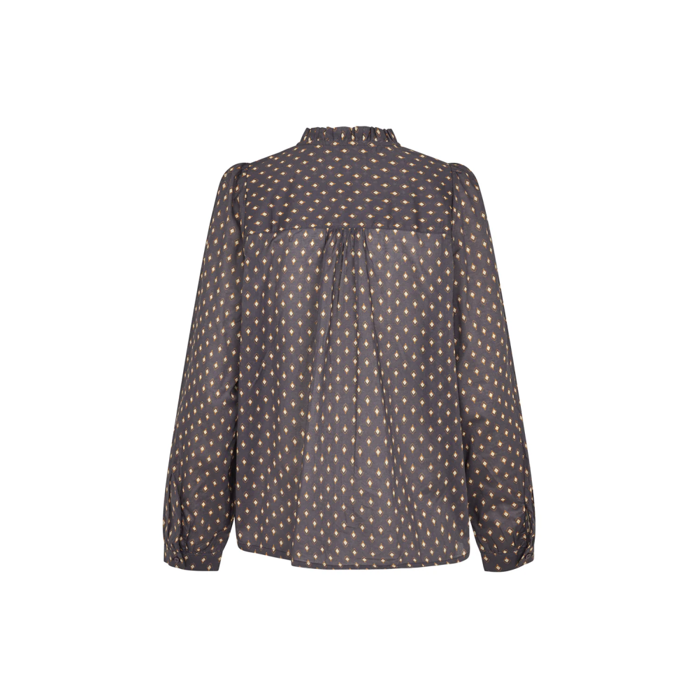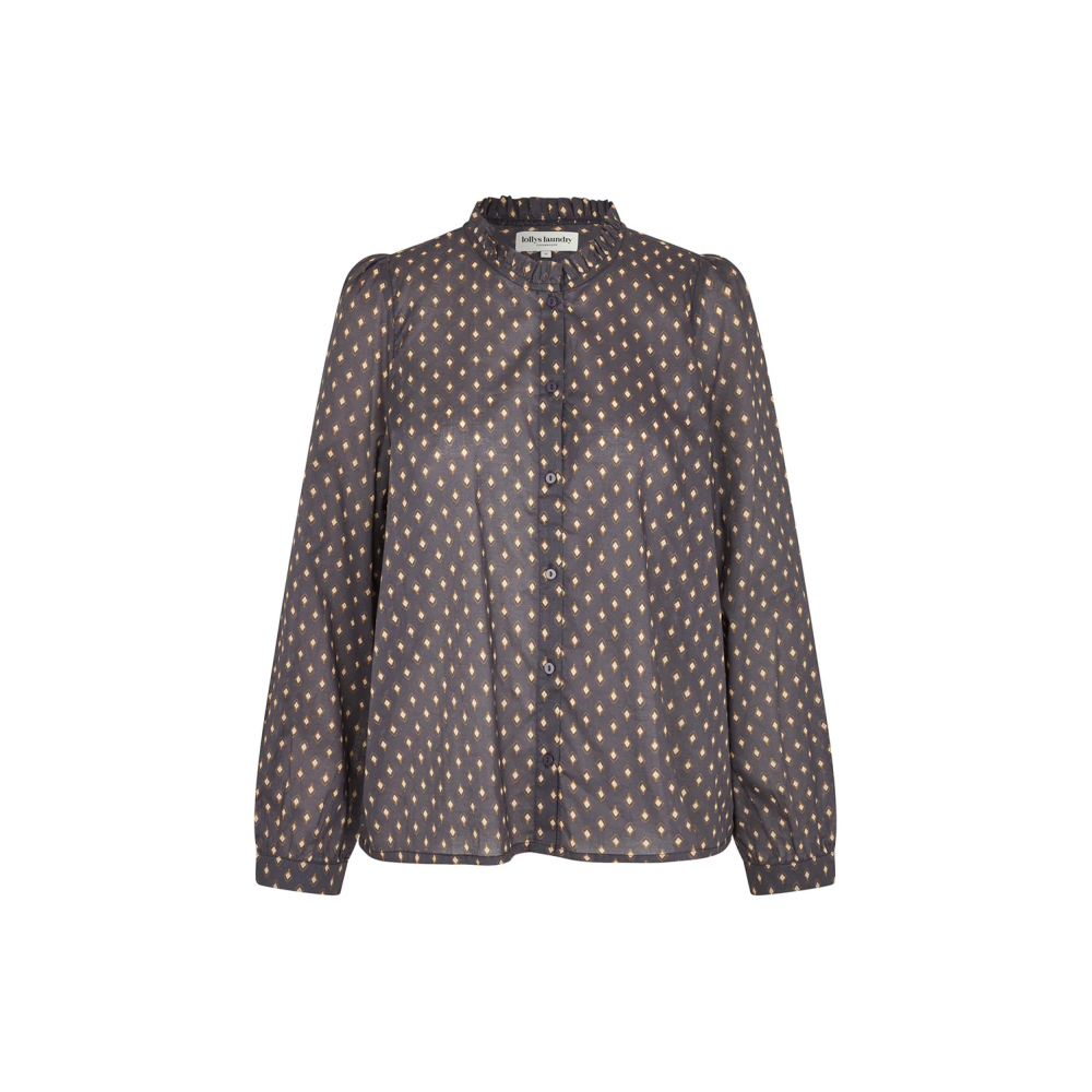 River shirt er en nydelig feminin bluse i tidløst print. Perfekt sammen med Sunset maxi skirt, som har samme mønster og farge. Den er i myk 100% bomull som puster, og har de fineste feminine detaljer som rynkekant langs kragen og små legg på skulderen. Super til en jeans til hverdags eller til fest med foreksempel skjørtet som matcher.