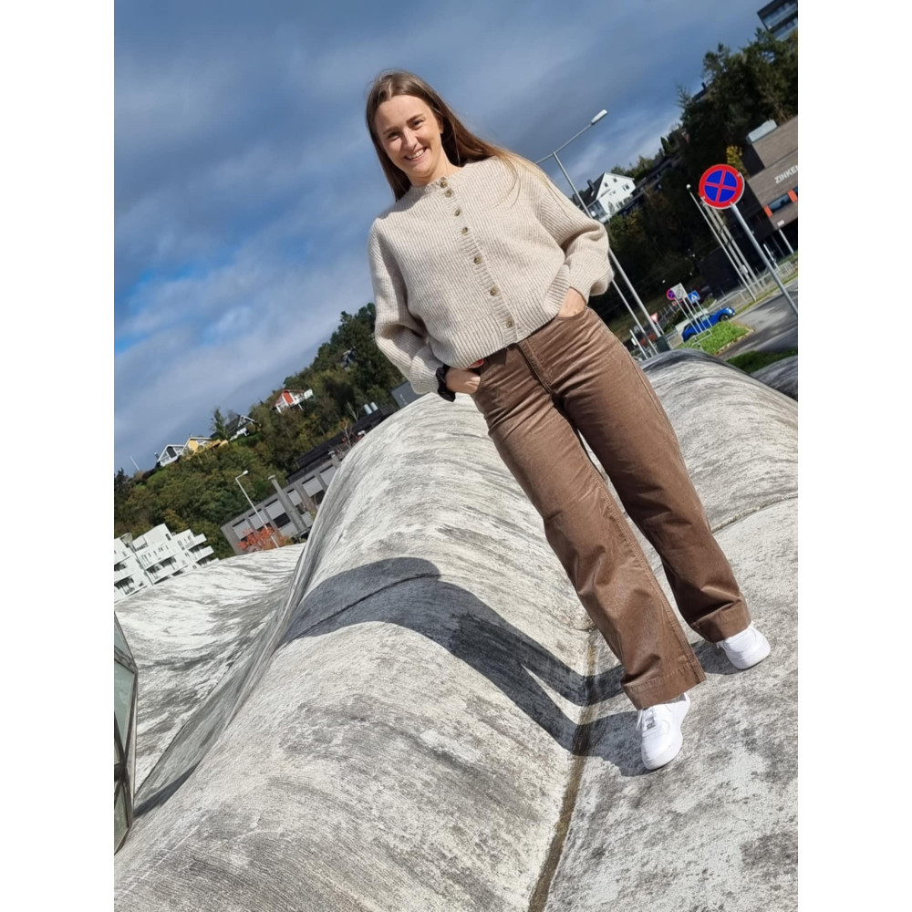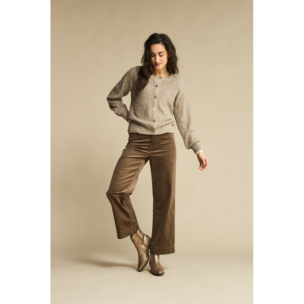 Conny fra red button har en klassisk flatterende passform, med vide ben og høy midje. I komfortabel lun fløyel og i en lekker taupe farge er den superaktuell for sesongen. En garderobefavoritt....