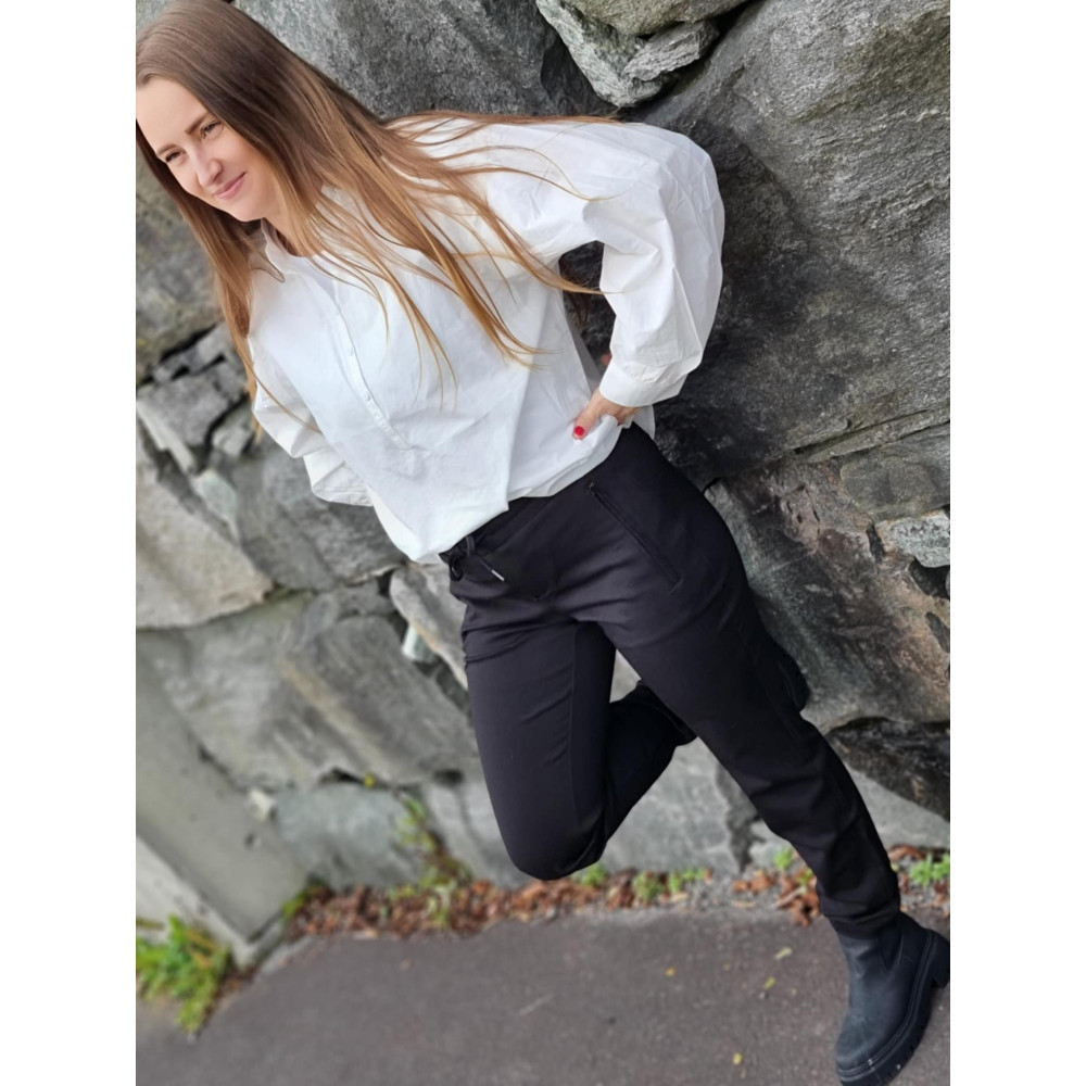 En komfortabel bukse fra red button, som lett kan kles både opp og ned. Myk og glatt i stoffet, høy midje, løs passform og ben som smalner fra midjen og ned. Snøring og elastikk i livet. Glidelås på...