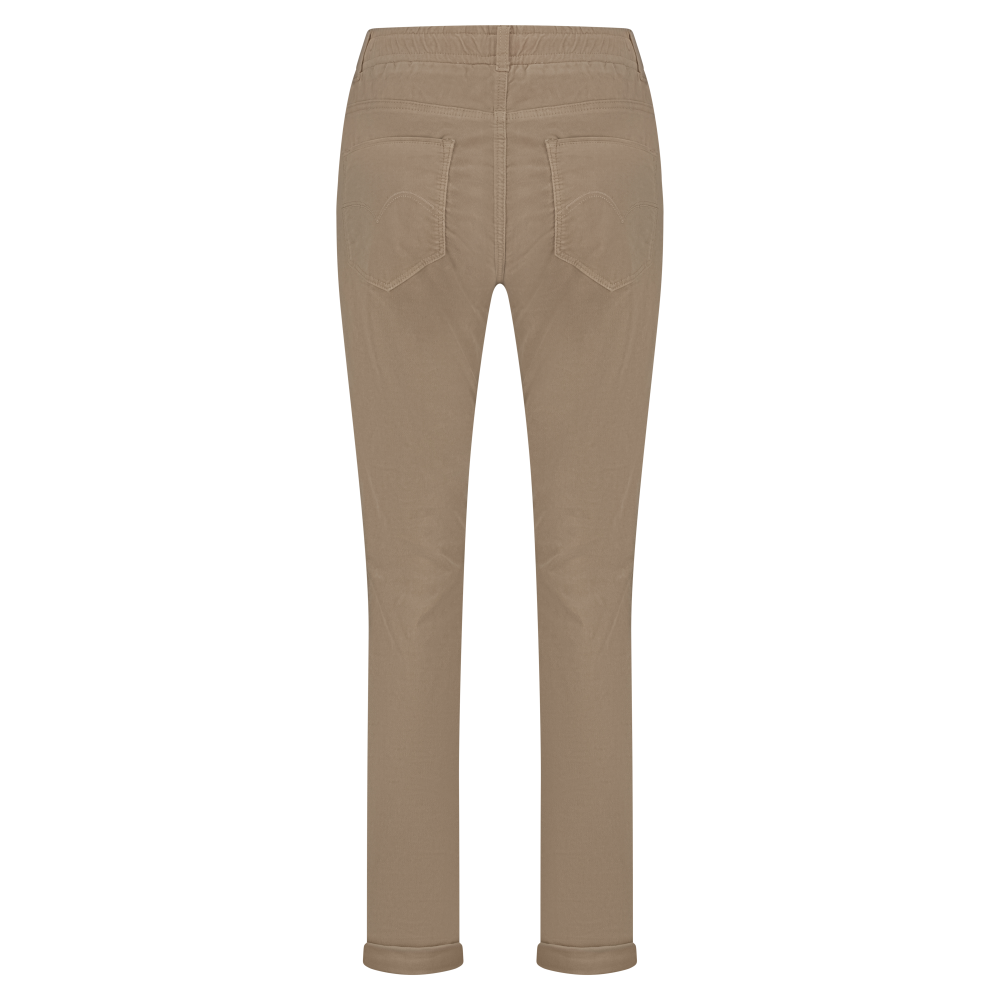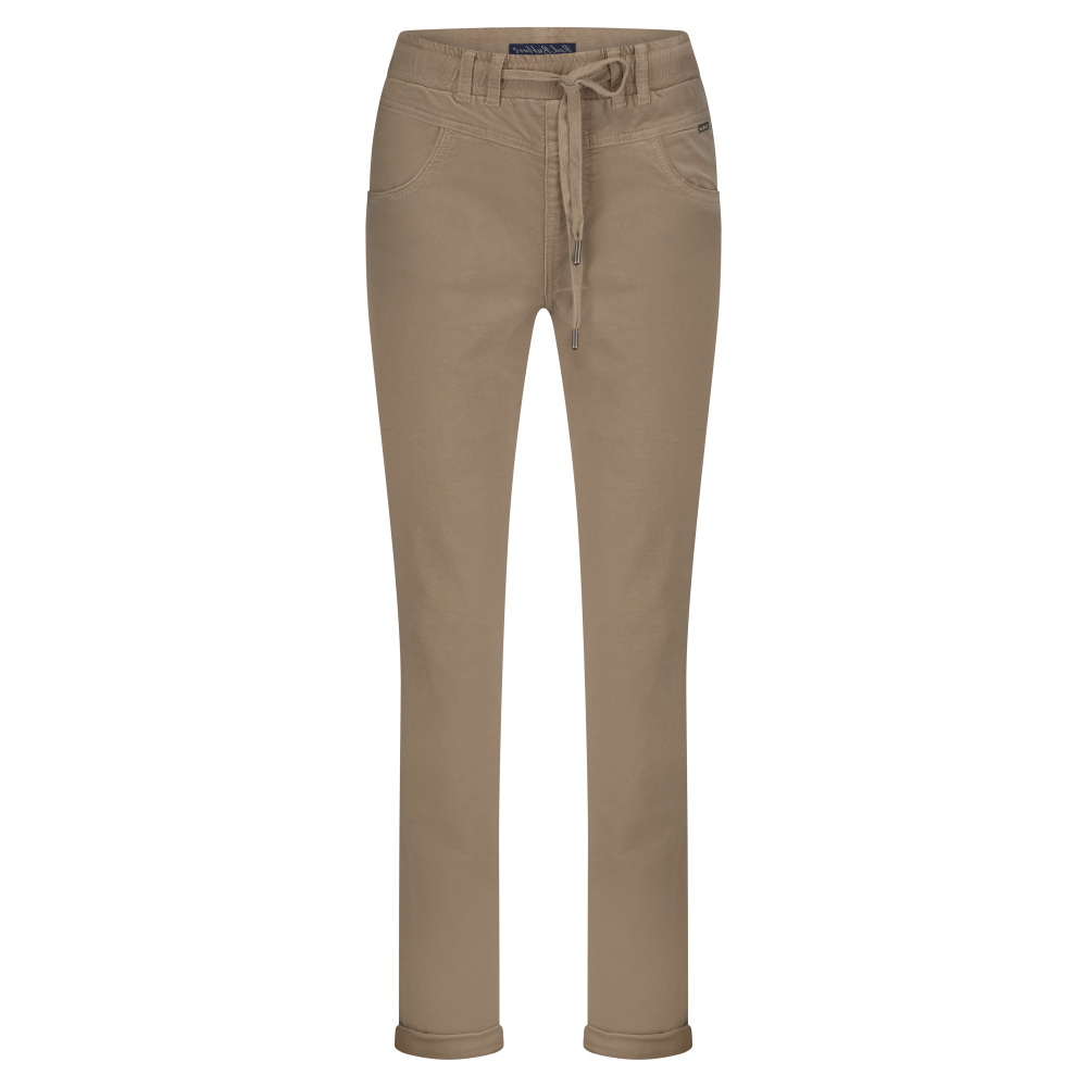Tessy, en bestselger favoritt fra red button. Med sin komfortable passform og myke bomullskvalitet. Høy midje, løs passform og ben som smalner fra midjen og ned. Lengden kan lett justeres med opp eller nedbrett. Elastisk i livet og med knyting som kan tas av om ønskelig. Høstens velur varianter kommer i flere fine farger. Denne i en nydelig latte farge.