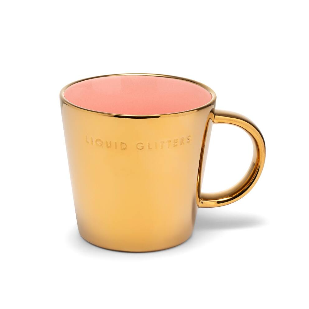 Glamorøs ny kopp fra Vondels! Med gullfarget utside og rosa innside og liquid glitters tekst. God å drikke av, god å holde i, fargerike, de fineste og gøyeste koppene som setter stemningen på et blunk. Velg en tekst du syntes passer akkurat deg eller en du kjenner. Fine gaver som lett blir satt pris på. Passer til både kaffe og tè.